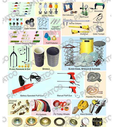 At Patco Exports, we also have General Accessories and Components for Textile Machinery such as: Auto Doffing Spares for Rieter, Marzoli, Zinser, Toyoda, Cognetex machines Chain Links for Schlafhorst Autoconer, Murata, Unifloc, Trutzschler, etc. Ceramic Cutters for Murata, Schlafhorst Aut...